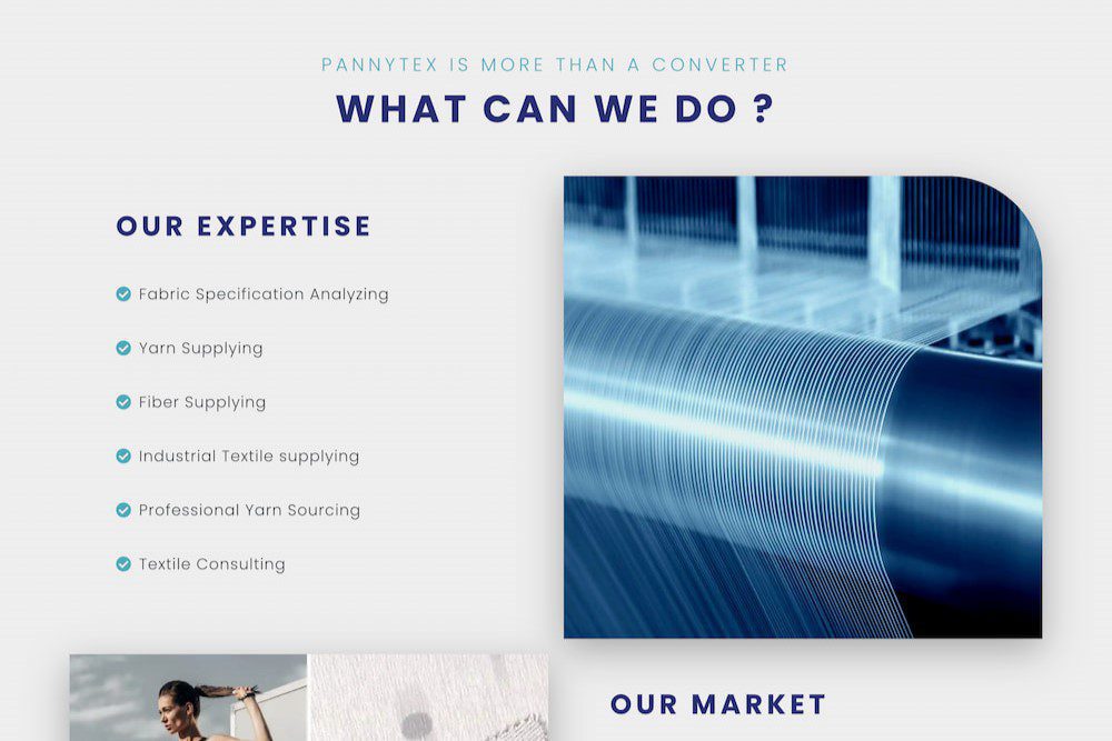 紡織材料外貿英文網站,設計簡約大氣,並在產品介紹上全客製化製作,令人耳目一新。