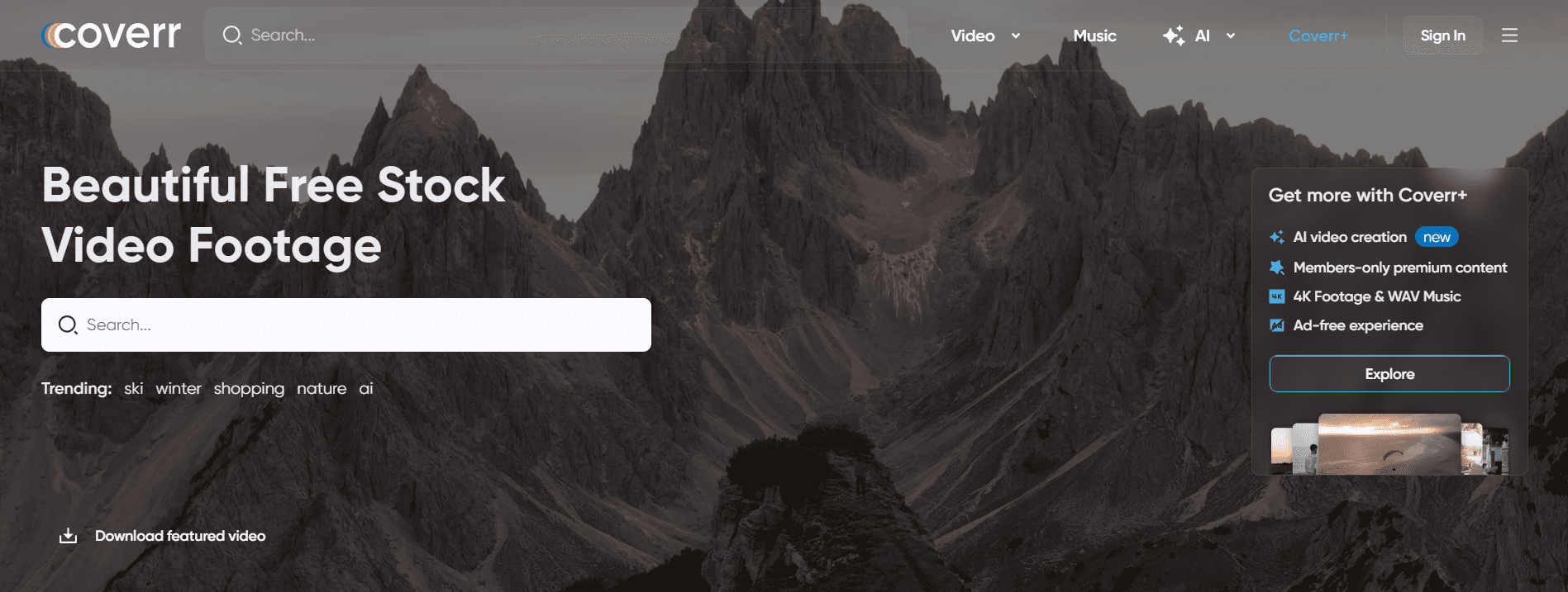Coverr是一個專門提供免費視頻背景的網站,非常適合需要視頻背景的網站設計師和內容創作者。他們每週都會添加新的免費影片,無需任何形式的署名或費用。