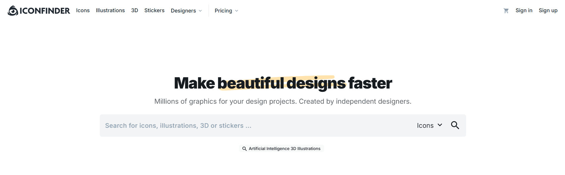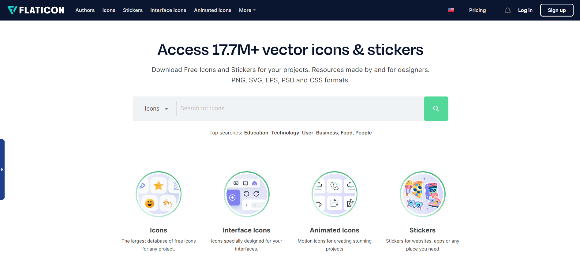 提供廣泛的免費和付費圖標,強大的搜索功能