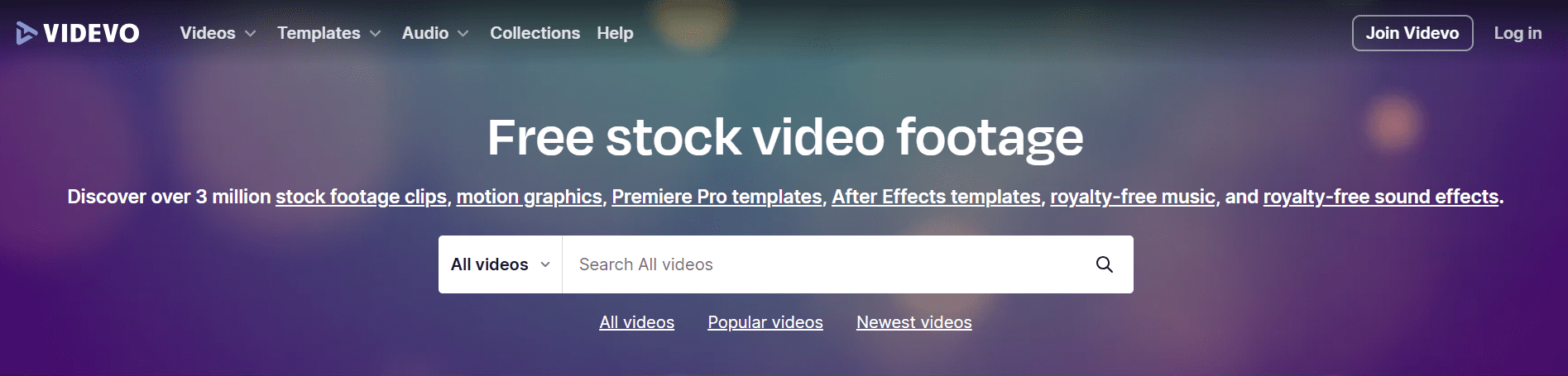 Videvo提供了成千上萬的免費高清影片和動效模板。雖然某些影片需要你在使用時給予作者署名,但大部分內容仍可免費商用。Videvo的素材質量很高,適合專業視頻製作和創意項目。
